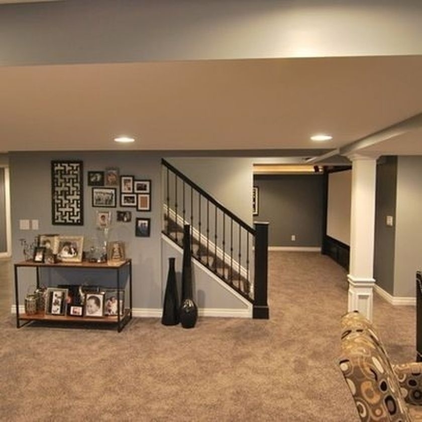 If you have a narrow room in your basement, you can try to put a wall gallery under the stairs. It will make your basement look modern and tidy.