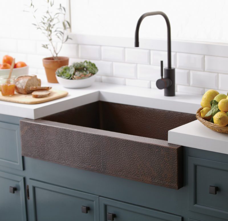 Copper is an option for making a farmhouse apron sink. This material is not easily porous and does not get dirty easily when used because it has a dark color. Copper apron sink from uniquevanities