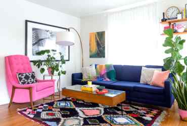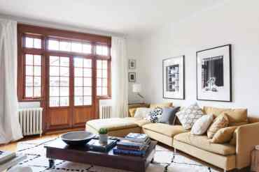This faux fur rug which has a geometric pattern is very suitable to be applied in a modern minimalist style living room decoration. The surface of this rug has a softer and warmer material so it is very comfortable to use all day long. You can choose a white rug so that it can be combined easily when you use a sofa and coffee table that has a bold color. Glass windows are a source of sunlight that can enter the room perfectly and freely. Faux fur rug from apartmenttherapy.